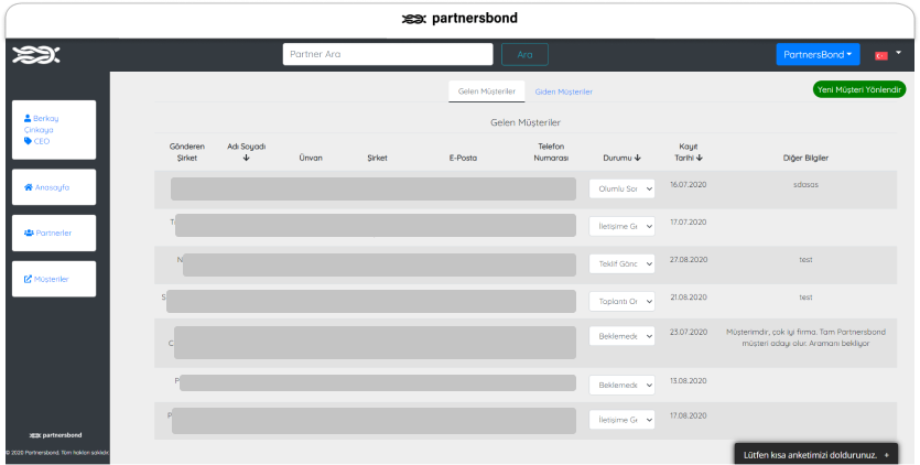 Partner verilerinizi takip edin, müşterilerin son durumunu öğrenin